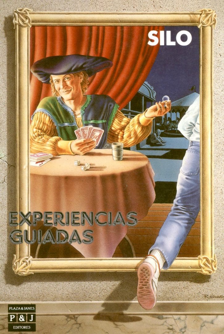Me acerco a la puerta. La examino. No veo cerrojo ni otro elemento a utilizar para abrirla. Sin embargo, empujo suavemente y la hoja se abre con un sonido metálico de siglos. Un ambiente muy largo y suavemente iluminado, queda al descubierto. No alcanzo a ver el fondo. A izquierda y derecha hay cuadros que llegan hasta el suelo. Son tan grandes como personas. Cada uno representa escenas diferentes. En el primero, a mi izquierda, figura un hombre sentado tras una mesa sobre la que hay barajas, dados y otros elementos de juego. Me quedo observando el extraño sombrero con que está cubierta la cabeza del jugador. Entonces, trato de acariciar la pintura en la parte del sombrero pero no siento resistencia al tacto, sino que el brazo entra en el cuadro. Introduzco una pierna y luego todo mi cuerpo en el interior del cuadro. El jugador levanta una mano y exclama: “¡Un momento, no puede pasar si no paga la entrada!” Busco entre mis ropas, extraigo una esferita de cristal y se la doy. El jugador hace un gesto afirmativo y paso por su lado.